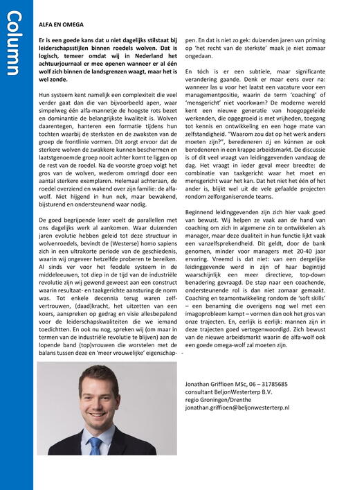 Beginnend leidinggevenden zijn zich hier vaak goed van bewust. Wij helpen ze vaak aan de hand van coaching om zich in algemene zin te ontwikkelen als manager, maar deze dualiteit in hun functie lijkt vaak een vanzelfsprekendheid. Dit geldt, door de bank genomen, minder voor managers met 20-40 jaar ervaring. Vreemd is dat niet: van een dergelijke leidinggevende werd in zijn of haar begintijd waarschijnlijk een meer directieve, top-down benadering gevraagd. De stap naar een coachende, ondersteunende rol is dan niet zomaar gemaakt. Coaching en teamontwikkeling rondom de ‘soft skills’ – een benaming die overigens nog wel met een imagoprobleem kampt – vormen dan ook het gros van onze trajecten. En, eerlijk is eerlijk: mannen zijn in deze trajecten goed vertegenwoordigd. Zich bewust van de nieuwe arbeidsmarkt waarin de alfa-wolf ook een goede omega-wolf zal moeten zijn.