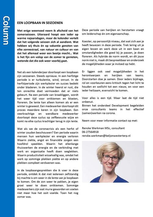 Wat als we de coronacrisis als een herfst of winter zouden beschouwen? Een periode waarin mensen hun werkplezier en energie verloren Waarin ziekte, angst en financiële zorgen een hoofdrol speelden. Waarin het ellenlange thuiswerken de energie en de verbinding met werk en organisatie heeft doen weglekken. Waarin productiviteit wisselvallig was, omdat het werk op sommige plekken piekte en op andere plekken compleet verdwenen was.