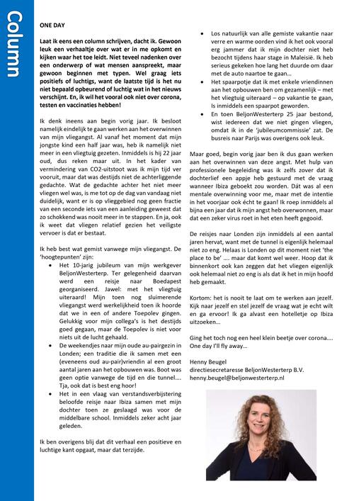Laat ik eens een column schrijven, dacht ik. Gewoon leuk een verhaaltje over wat er in me opkomt en kijken waar het toe leidt. Niet teveel nadenken over een onderwerp of wat mensen aanspreekt, maar gewoon beginnen met typen. Wel graag iets positiefs of luchtigs, want de laatste tijd is het nu niet bepaald opbeurend of luchtig wat in het nieuws verschijnt. En, ik wil het vooral ook niet over corona, testen en vaccinaties hebben!